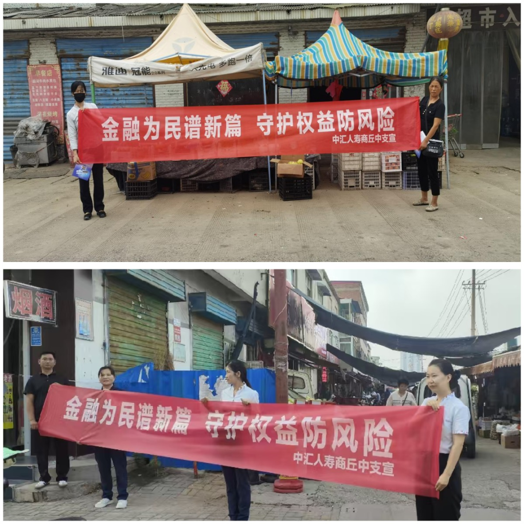 9月9日和9月11日,中汇人寿商丘中支及永城支公司分别前往商丘市睢阳区金世纪菜市和陈集镇刘河村开展“金融知识赶大集”宣传活动。本次活动通过向群众发放宣传彩页,宣讲相关金融知识,以此提醒消费者防范消费风险,警惕金融高利保本的陷阱、高利诱惑,远离非法集资。通过通俗易懂的方式介绍了金融基础知识和常见金融风险防范技巧,提醒大家警惕高利诱惑和代理退保,主动远离非法金融活动。2024年9月14日,中汇人寿商丘中支联合商丘市多家保险公司开展“进广场”活动。活动中工作人员在显眼的位置悬挂横幅宣传标语,向群众发放金融知识宣传手册、折页资料并介绍活动主题,同时向群众讲解了防范非法集资和反洗钱等金融知识,助力提升群众的金融素养。2024年9月14日,中汇人寿商丘中支和睢阳区东方办事处凯旋社区联合长征人民医院开展了“社区义诊”活动。活动中工作人员在显眼的位置悬挂横幅宣传标语,向群众发放金融知识宣传手册、折页资料并介绍活动主题,普及金融保险相关知识。在讲解金融知识的同时,现场的医生们有条不紊地依次为前来咨询的群众测量血压、诊脉和解读体检报告,并耐心地根据咨询群众的身体情况提出合理健康膳食要求及健康生活锻炼方式。中汇人寿永城支公司深入永城市酂城镇卞庄村开展“我为村民刷面墙”教育宣传活动,充分用好偏远农村墙报宣传栏等一线阵地,为当地老百姓绘制金融知识文化墙,让金融知识贴近村民的真实生活。9月15日活动当天,通过向过往群众发放金融知识宣传手册和折页资料,普及金融基础知识、保险常识、投资风险教育、个人信息保护等核心内容。本次活动旨在帮助消费者全面了解金融知识,提升自我保护能力。现场发放宣传资料60余份,受众人数40余人。9月20日中汇人寿商丘中支工作人员前往梁园区李庄镇邓庄村通过村委会的大喇叭向村民进行了金融知识宣传,为邓庄村村民发放了防养老诈骗和金融知识等宣传手册,并现场讲解了金融诈骗案例以及电信诈骗识别小技巧,得到在场村民的一致好评。活动结束后,村支书对工作人员表示了感谢,他表示村中大多数为留守老人和儿童,平时很少能有机会学习这些知识,中汇人寿的这次活动为他们村带来了防范诈骗的知识,提升了村民的防诈骗意识和能力。中汇人寿商丘中支将持续坚持高质量党建引领高质量发展,以中汇人寿2024“客户年”的工作方向为指引,打造“以客户为中心”的服务体系,坚持以人民为中心的价值取向,开展行业诚信建设,为提升公众金融素养,保障消费者切身利益而努力。