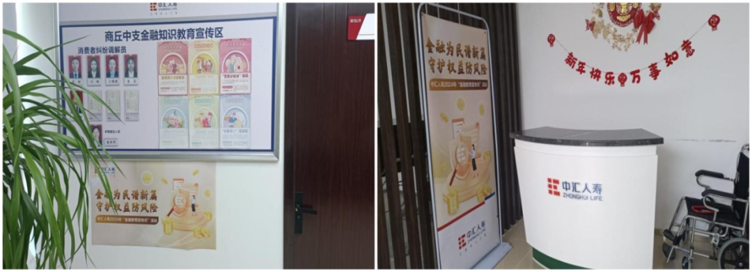 为营造良好的宣传氛围,2024年9月,中汇人寿商丘中支及辖内机构在职场张贴摆放活动海报、展架、条幅、宣传折页等宣传资料,结合线上线下进行金融知识宣传,在电视屏幕播放《金融消保在你身边》等金融知识相关视频,让“金融教育宣传月”深入客户心中。
