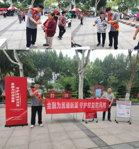 在金世纪广场活动现场,我司工作人员摆放了宣传展台及金融知识宣传月、防范非法集资、反洗钱等各类宣传展板、展架,拉起了“金融为民谱新篇 守护权益防风险”的宣传条幅,向过往群众和市民普及金融知识。工作人员向现场群众讲解了电信诈骗的新手段、新方式,提醒大家要保护好个人的身份信息,不外借身份证、电话卡,在防范电诈风险的同时不做诈骗的工具人;针对老年朋友,工作人员讲起了非法集资的危害、损失自担的风险,提醒大家遇到“好产品”要理性选择,多想、多问、多等一天,要选择正确的投资渠道,不要受高息诱惑,不要相信天上掉馅饼的“好事”。宣传过程中,我司工作人员还将一瓶瓶纯水和一份份金融知识单页送到到现场群众手中,再次提醒大家要树立理性投资和防诈防非的风险意识。