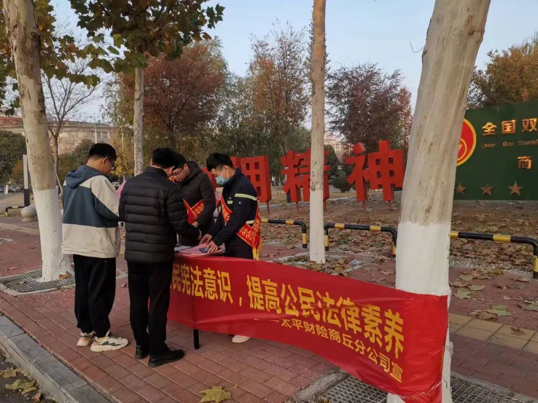 2023年12月4日是第十个“国家宪法日”,这天太平财产保险有限公司商丘分公司在商丘市双拥公园开展了主题为“增强公民宪法意识,提高公民法律素养”的“国家宪法日”宣传活动。