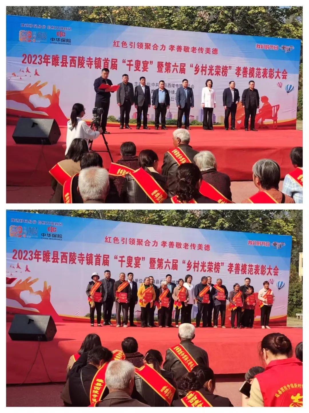 中华财险联合睢县西陵寺镇人民政府召开了2023年睢县西陵寺镇首届“千叟宴”暨第六届“乡村光荣榜”孝善模范表彰大会