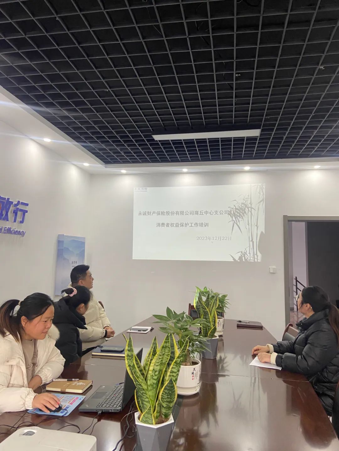 为不断加强金融消费者权益保护,增强消费者获得感、幸福感、安全感,不断提升全体员工消费者权益保护意识和工作能力,提升金融服务水平,针对近期河南分公司下发修订的消费者权益保护工作相关内控制度,12月22日上午,永诚财险商丘中支组织开展消费者权益保护专题培训工作。