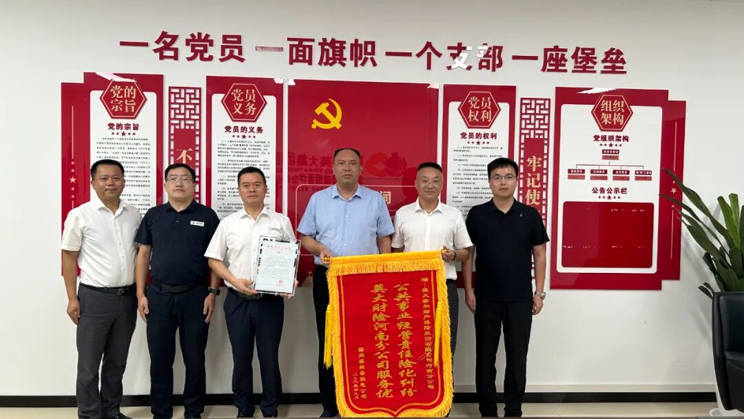 9月1日下午,虞城县政府及虞城县供电公司代表专程到访英大财险河南分公司,向分公司赠送感谢信及锦旗。