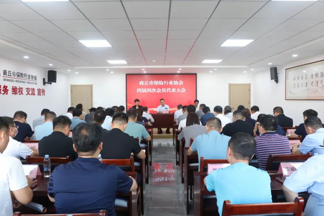 9月15日上午,商丘市保险行业协会召开四届四次会员代表大会。商丘市保险行业协会会长、副会长、秘书长及52家会员代表参加会议。协会秘书长陈桂莲主持会议。