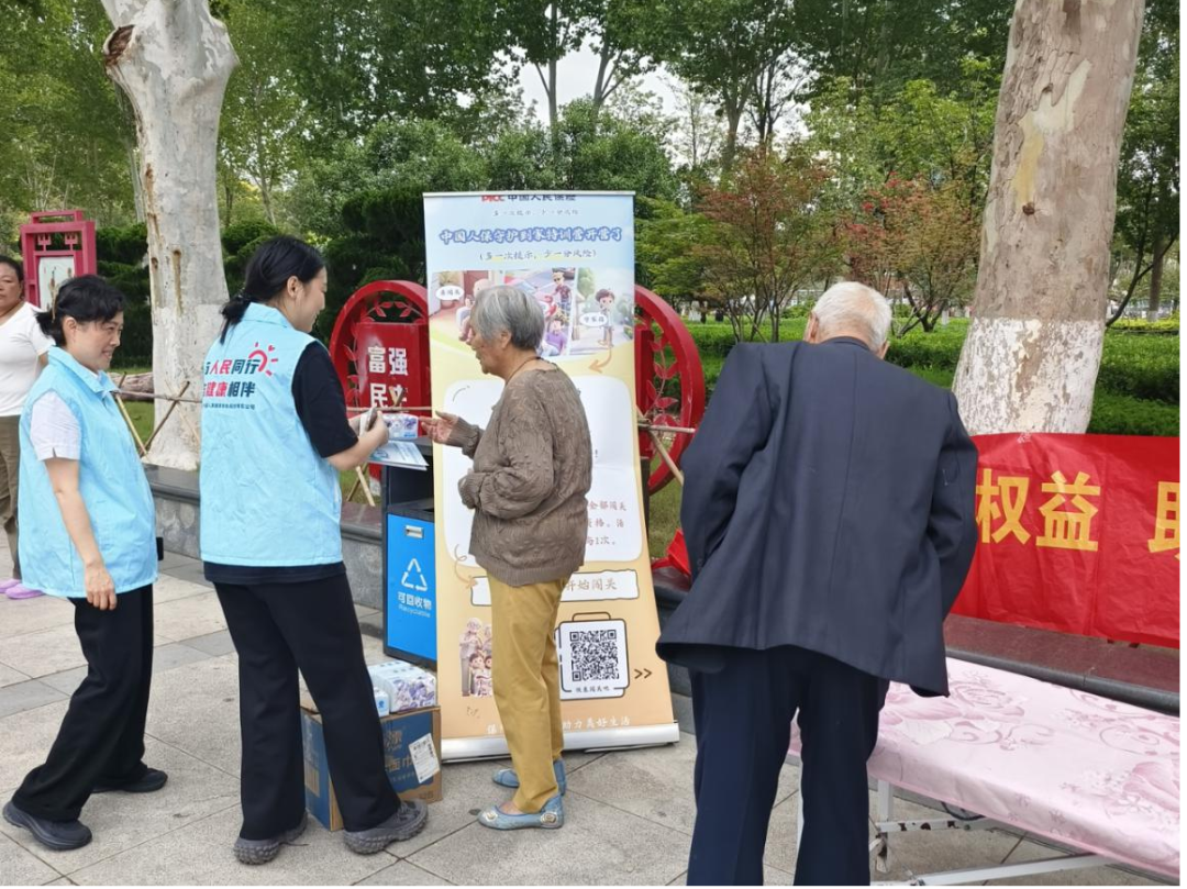 在为期三天的活动中,宣传人员通过悬挂横幅、发放资料、一对一讲解等形式,向市民普及消费者权益保护、防范电信诈骗、个人信息安全等金融知识,并融入健康管理内容,针对老、少、残等重点人群提供贴心咨询。健管老师现场讲解天气变化对特殊人群的身体影响,传递科学健康理念。