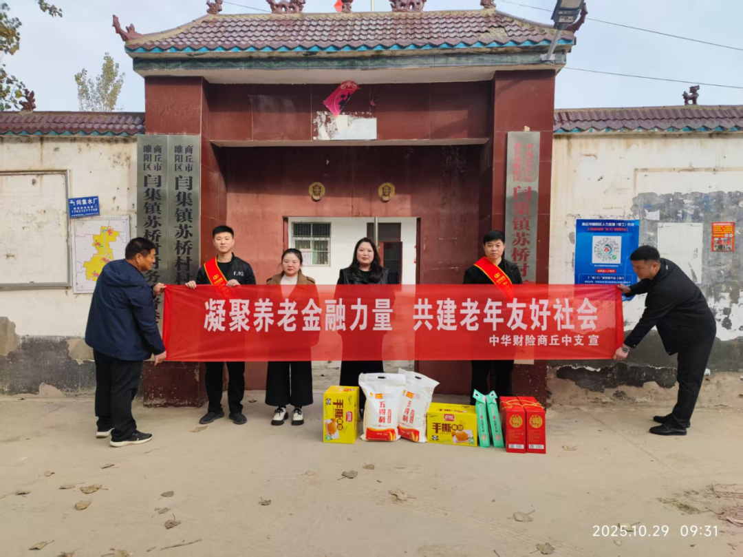 岁岁重阳,今又重阳。在重阳节来临之际,中华财险商丘中支组织志愿服务队深入闫集苏桥村,开展“凝聚养老金融力量 共建老年友好社会”主题慰问活动,为辖区内的老年群体及退役老兵送去关怀与祝福,以实际行动践行企业社会责任。