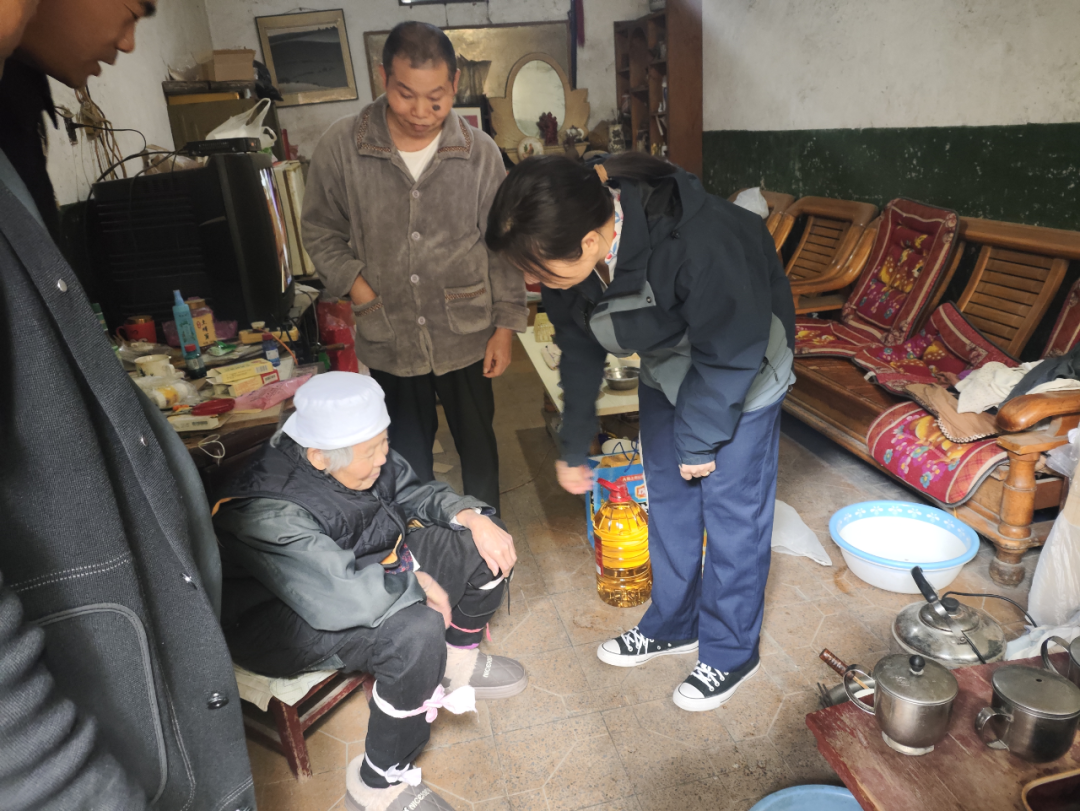 走访慰问传递温情:由商丘中支联合当地社区,重点对辖区内的独居、空巢特殊家庭老年人,开展上门慰问1次。期间为老年人送去米、面、油等生活物资,帮助打扫家庭卫生、检查用电安全