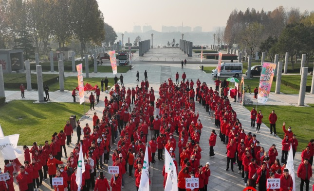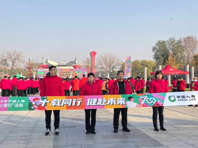 初冬的商丘日月湖生态公园,澄澈湖水倒影蓝天,金色银杏随风摇曳。11月21日上午,中国人寿商丘分公司“十载同行 健赴未来”日月湖“700健行”活动在日月湖畔成功举行。商丘市保险行业协会秘书长陈桂莲,中国人寿商丘分公司党委书记、总经理肖智洋,中国人寿财险商丘市中心支行公司党委书记、总经理王莹,广发银行商丘分行行长王超等领导出席活动。来自社会各界的新老客户及国寿员工,千余人齐聚日月湖畔,以蓬勃身姿践行健康理念,用坚实脚步书写央企与市民的同行情谊。