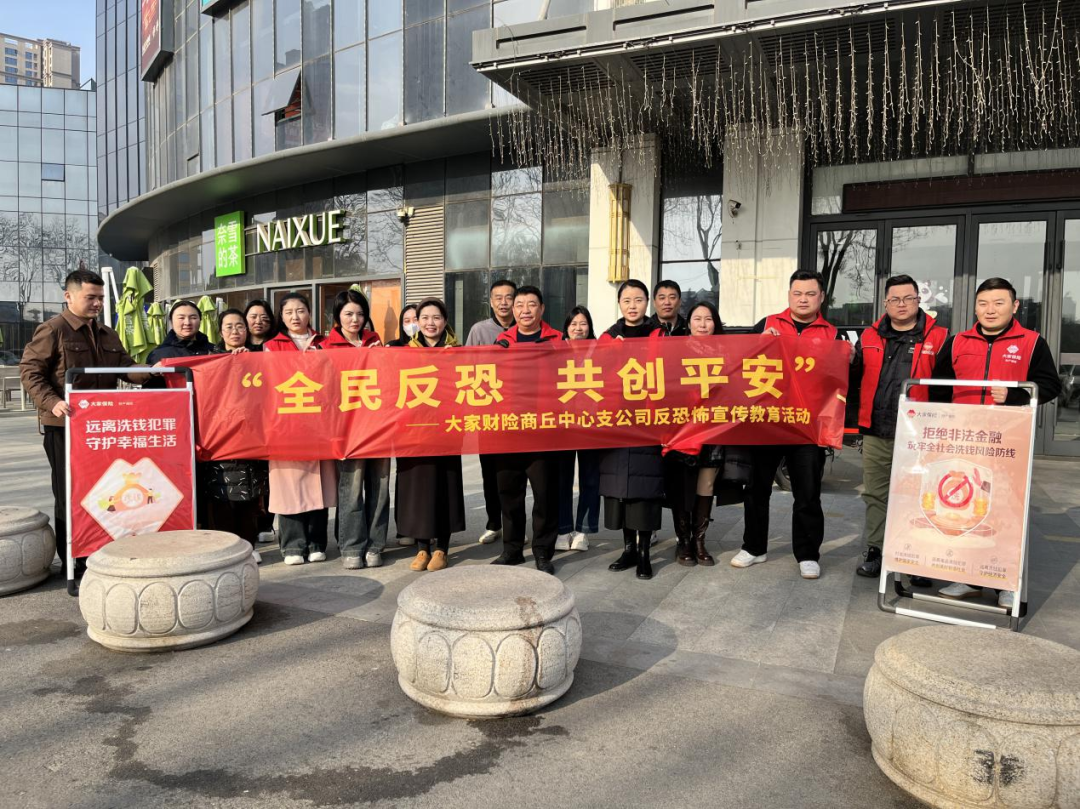 今年是《反恐怖主义法》颁布10周年,为进一步提升公众对恐怖主义的认识和防范能力,营造全民参与反恐的良好氛围,大家财险河南分公司商丘中心支公司结合工作实际,围绕反恐怖融资工作职责,通过多种渠道,开展了以“全民反恐 共创平安”为主题的宣传教育活动。