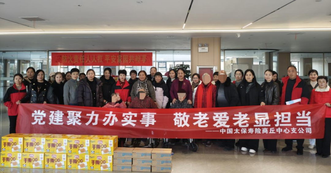 为深入践行以人民为中心的发展思想,推动“我为群众办实事”实践活动走深走实,2026年1月7日,中国太保寿险商丘中心支公司党委总经理室成员及内外勤党员干部,走进柘城县同兴家和康养小镇,开展“党建聚力办实事 敬老爱老显担当”主题爱心活动,以实际行动诠释国企担当,把关怀与温暖送到老人们的心坎上。