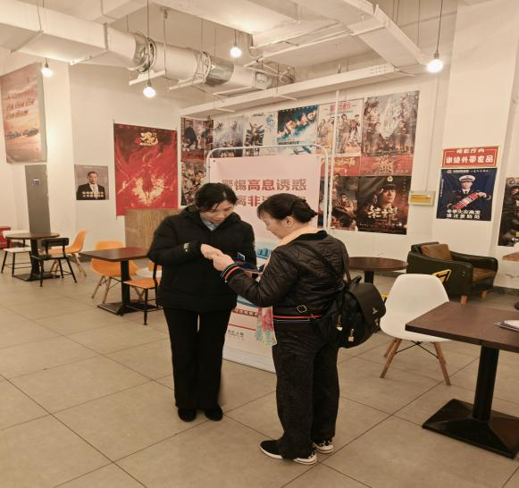 活动现场设立了宣传咨询台,工作人员向前来观影的市民发放宣传折页。折页内容聚焦非法集资、电信诈骗等年末高发骗局,以案例揭露其“高息诱惑”“虚假项目”等手法。工作人员结合折页现场答疑,特别提醒中老年群体警惕“养老投资”等新型骗局,管好“钱袋子”。