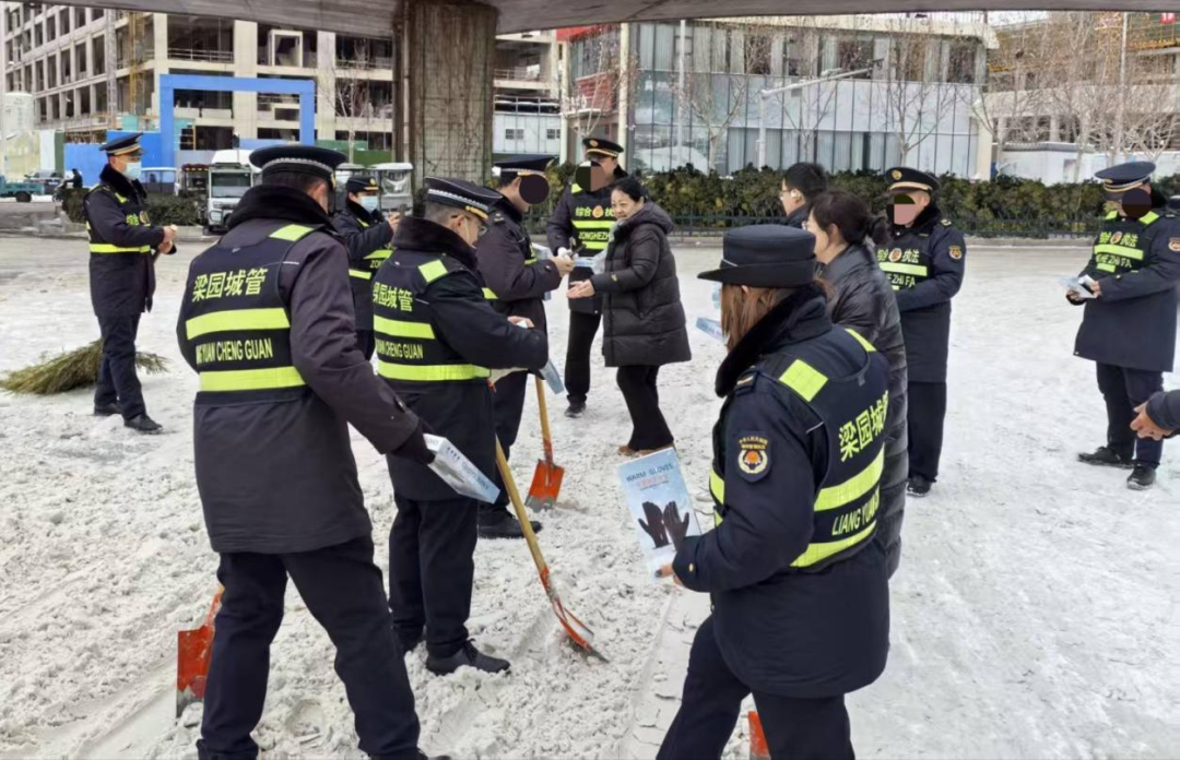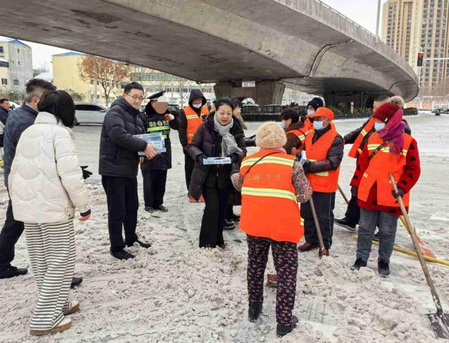 近日,商丘市区迎来持续降雪,梁园区城管与环卫工作人员不畏严寒、昼夜奋战,全力开展清雪除冰作业,有力保障了道路畅通和市民出行安全。慰问现场,公司班子成员亲手将保暖手套送到一线劳动者手中,对他们顶风冒雪、辛勤付出的奉献精神表示赞许。