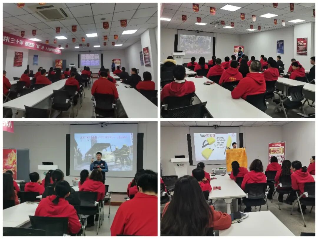 本次培训紧扣“现代消防三要素”核心理念,通过“理论+实操”模式展开。教官结合高层建筑火灾特点,深入剖析冬季用火用电集中、燃气安全隐患等典型风险点,并对“四懂四会”等核心知识进行详细阐述。讲解并演示了灭火器、灭火毯、应急照明灯等常用器材的正确配置与使用方法。通过情景式教学学习灭火扑救技巧和逃生自救技能。同时观看了近期重大火灾典型案例视频,警示员工时刻树牢安全底线思维,杜绝侥幸心理。