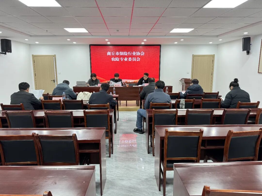 1月30日下午,商丘市保险行业协会组织召开农险专业委员会四届四次会议,围绕商业性农险共治机制建设、行业自律与风险防控等议题进行专题研讨与部署。商丘金融监管分局保险科王佳乐出席会议,商丘市保险行业协会秘书长陈桂莲主持会议,全市7家农险经营机构负责人参加会议。