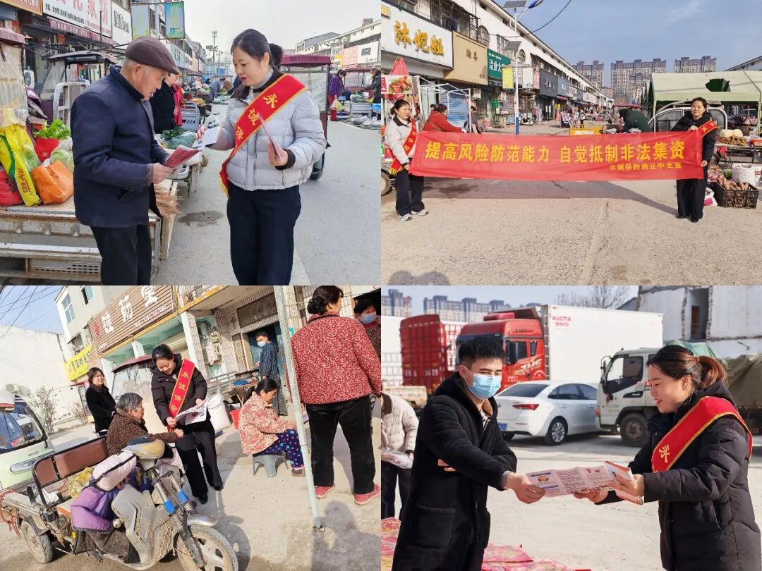 为切实提升公众金融风险防范意识,维护岁末年初金融安全环境,2月13日永诚保险商丘中支积极组织员工走进平台镇集市开展以“提高风险防范能力 自觉抵制非法集资”为主题的宣传活动。