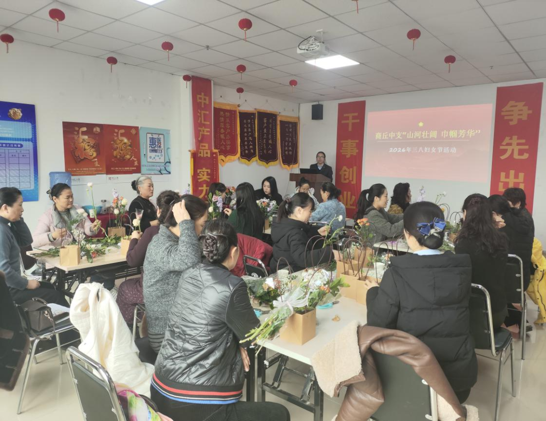 为庆祝“三八”国际劳动妇女节,丰富女职工精神文化生活,中汇人寿商丘中支于2026年3月6日组织开展了“山河壮阔 巾帼芳华”主题插花活动,为全体女职工送上了一份温馨别致的节日祝福。
