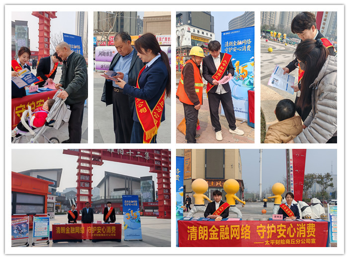 3月12日太平财险商丘分公司前往睢阳十二集和信华天街开展“清朗金融网络 守护安心消费”主题宣传活动。活动围绕保护金融权益主旨,以消费者为中心,充分发挥资源优势,紧贴人民群众需求,以增强信心为重点,加大正面宣传力度,自上而下全面推动金融服务和教育宣传工作的落实。