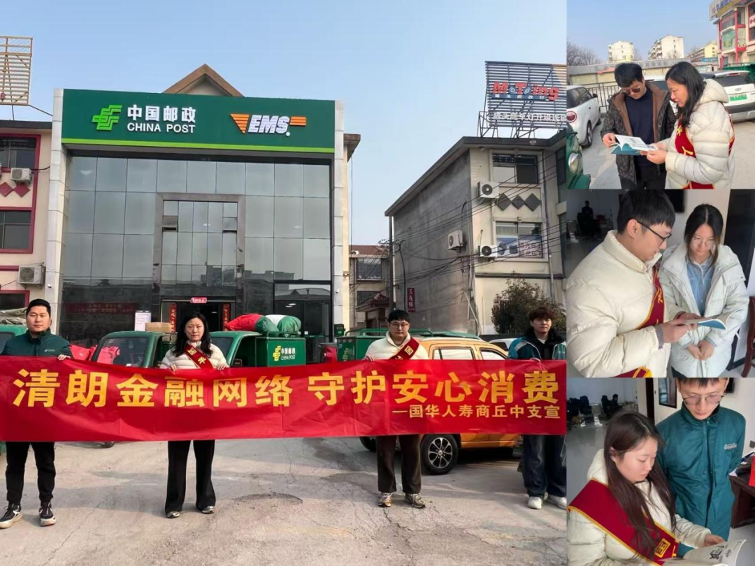 为深入践行金融为民、消保为民理念,提升社会公众金融风险防范意识,筑牢金融安全防线,近日,国华人寿商丘中支积极响应监管号召,走进中国邮政速递物流(EMS)香君路合作网点,开展“清朗金融网络 守护安心消费”为主题金融消保宣传活动,将保险知识、风险防范与维权服务送到一线。