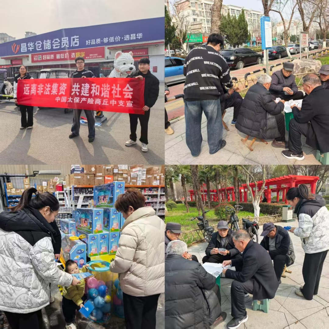 3月9日,为切实维护金融安全,保护保险消费者财产安全,中国太保产险商丘中支深入开展防范非法金融风险宣传活动。