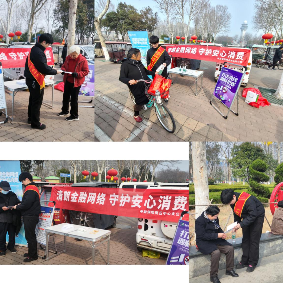 在“3・15 国际消费者权益日”来临之际,申能保险商丘中支组织业务骨干走进金世纪广场,开展以“清朗金融网络、守护安心消费” 为主题的金融消费者权益保护教育宣传活动,将金融消保知识送到群众身边。