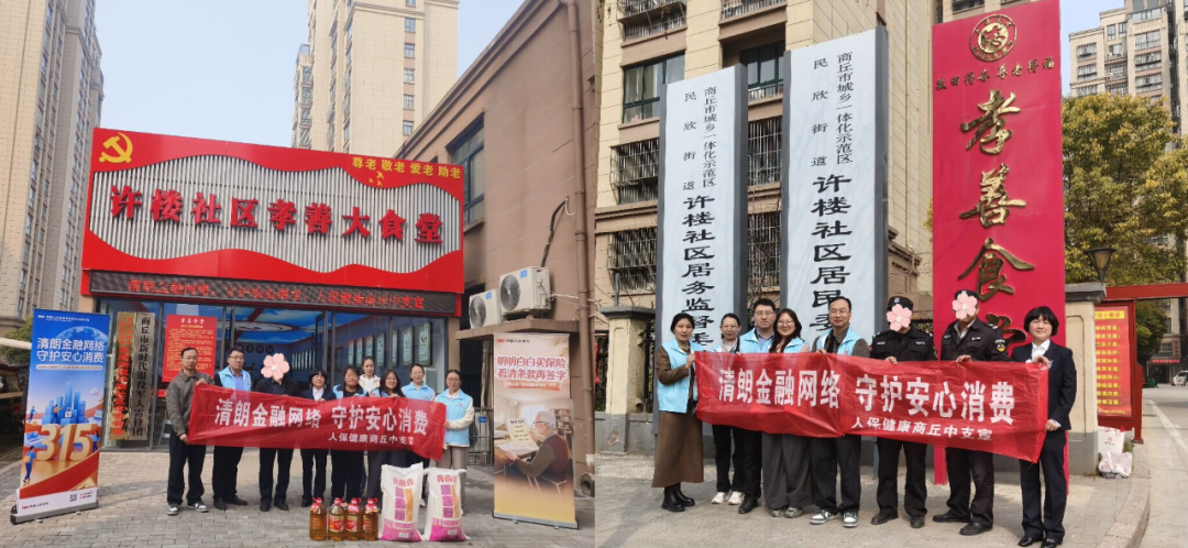 为深入贯彻落实2026年“3·15”金融消费者权益保护教育宣传工作要求,紧扣“清朗金融网络 守护安心消费”活动主题,人保健康商丘中支坚持党建引领,将消保宣教与“银发守护计划”深度融合,于3月12日组织党员先锋队及工会志愿者走进示范区许楼社区孝善大食堂,开展了一场有温度、接地气、见实效的金融消保主题宣传活动,把暖心关怀与实用知识送到老年群众心坎上。