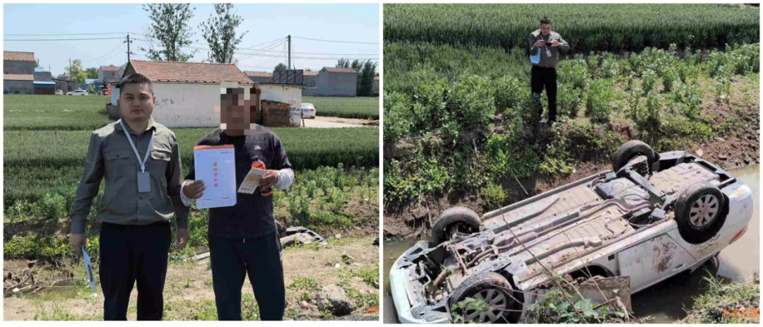5月2日,客户谷先生在乡间小路的十字路口发生交通事故,导致车辆失控冲进水沟,造成车辆翻车及人员受伤。阳光财险查勘员接到调度立即出发,约30公里的路程仅用20分钟便抵达现场,查勘员到后第一时间安抚车主,引导车主撤离危险地带并协助受伤人员送往医院救治。紧接着向车主及三者做笔录了解事故经过,同时联系拖车进行车辆救援。整个服务流程高效专业,让客户和三者纷纷竖起了大拇指。