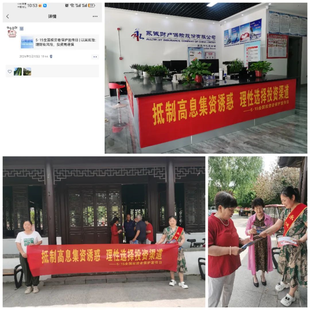 为进一步倡导理性投资文化,切实维护广大投资者合法权益,永诚财险商丘中支通过多种方式积极开展2024年“5.15全国投资者保护宣传日”宣传活动。