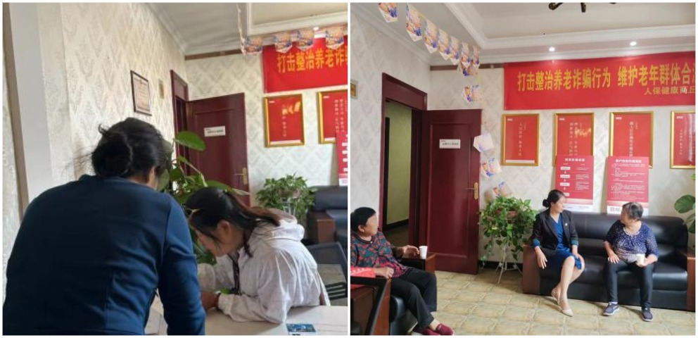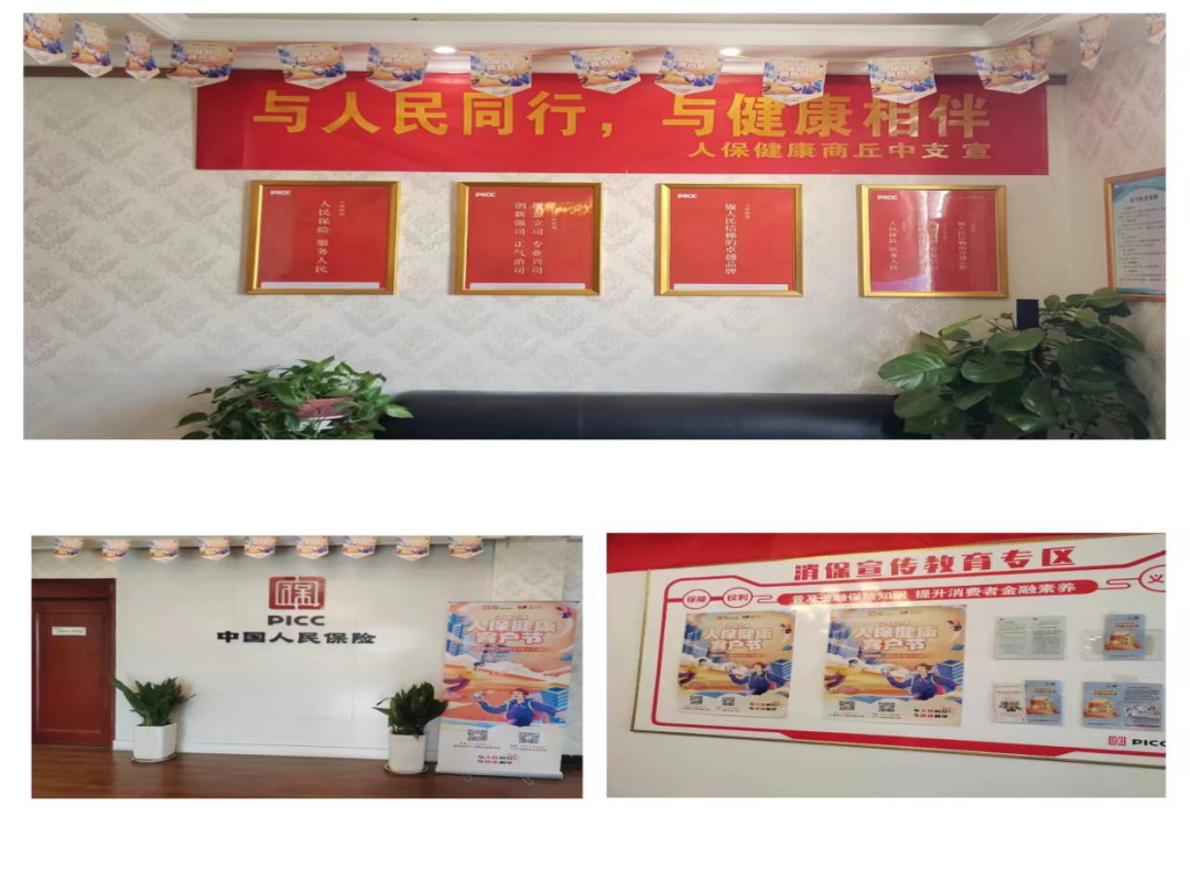根据分公司下发2024年客户节的活动方案,商丘中支在职场内布置关于客户节的宣传:悬挂吊旗、张贴活动主题为“与人民同行  与健康相伴”条幅和海报、放置易拉宝、布置消保宣传教育专区等,使客户在进入职场时清晰的看到本次宣传活动内容。