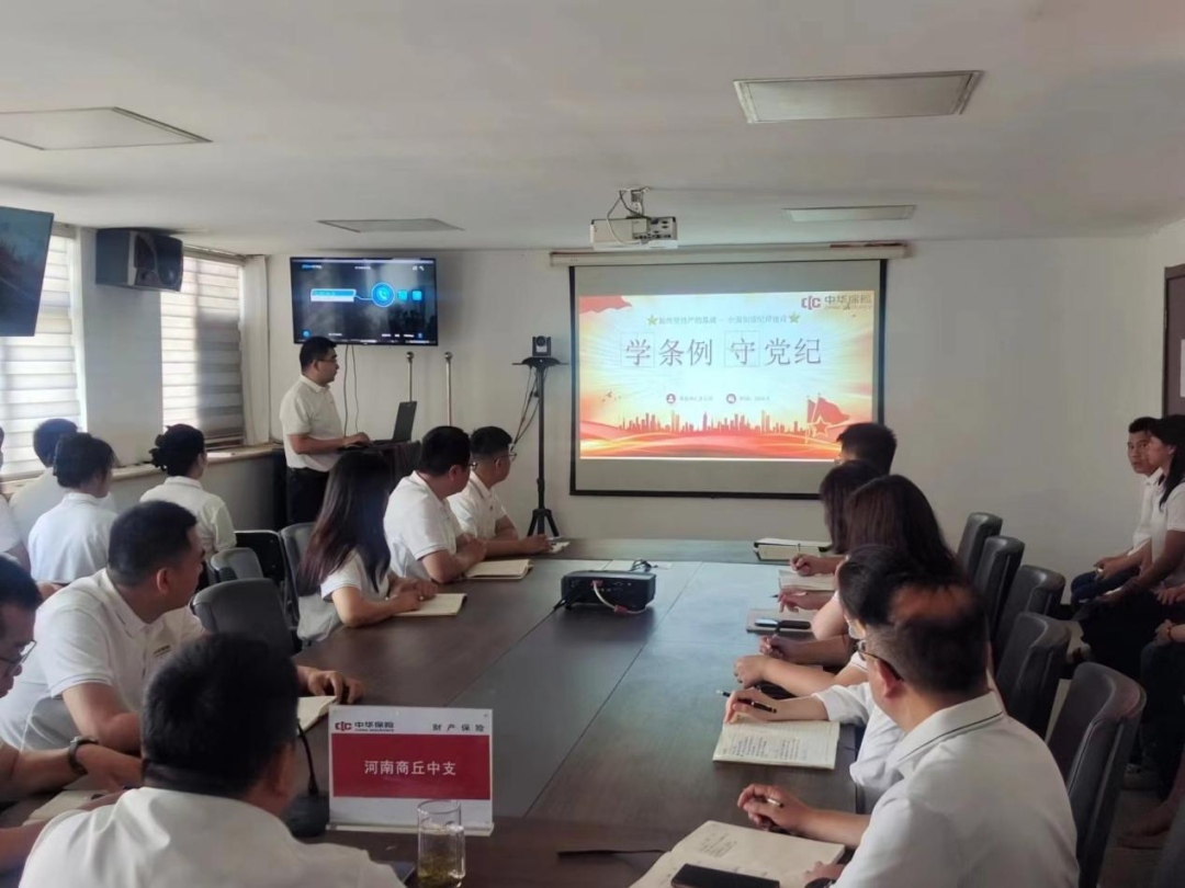 会上,中华财险商丘中支就《中国共产党纪律处分条例》第4-6章节及中央八项规定精神相关内容进行了宣导学习。全体与会人员将逐章逐条“学纪”,入脑入心“知纪”,对标对表“明纪”,慎始慎终“守纪”,刻印于心、外化于行,提升纪律素养和理论水平。