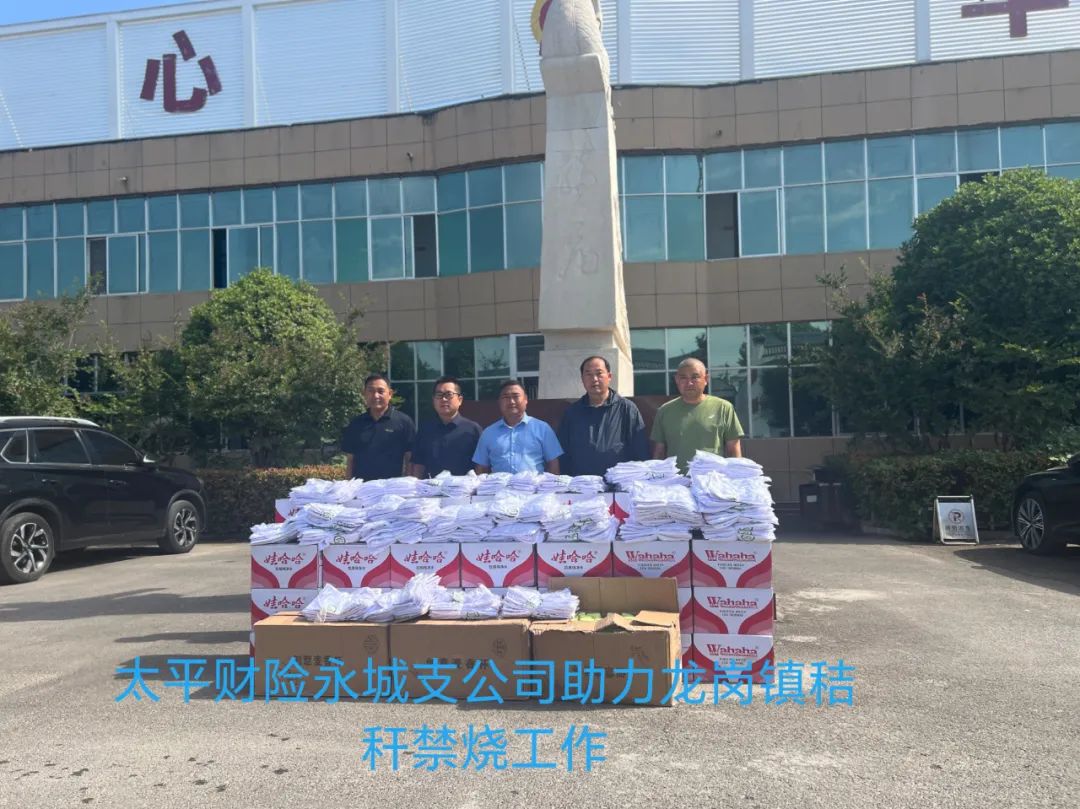 正值“三夏”麦收期间,随着气温的不断升高,秸秆禁烧工作也进入了关键时期。为支持基层做好秸秆禁烧防火工作, 6月1日上午,太平财产保险有限公司永城支公司主动承担社会责任,为龙岗镇政府一线工作人员送去30多件娃哈哈纯净水、300件防晒服,300个麦香水杯等物品,用实际行动助力龙岗镇三夏麦田防火工作。