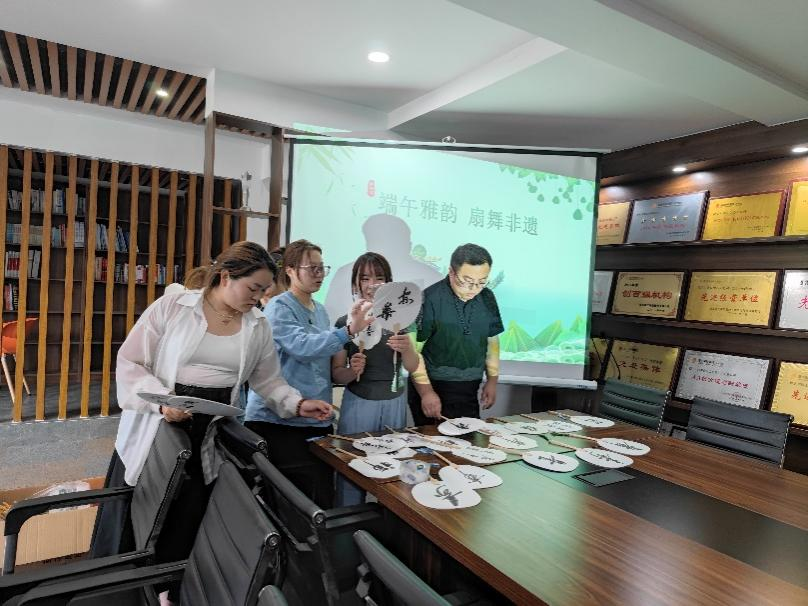 为弘扬传统文化,营造浓厚的节日氛围,在端午节来临之际。阳光财险商丘中支组织主题为端午雅韵.扇舞非遗活动。